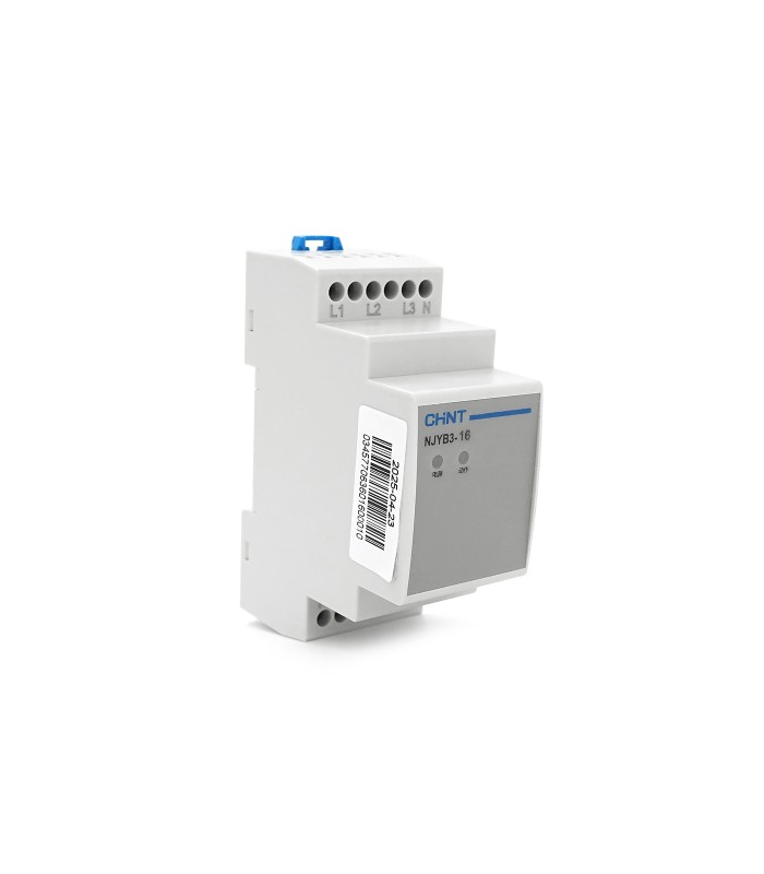 Реле контроля фаз CHINT NJYB3-16 AC220V, 3F4P, Защита обрыва/последовательности фаз, Ue240/415V, Ie0.75/0.47, 1CO+1NO
