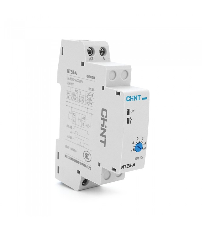 Реле времени CHINT NTE8A110S представляет собой компактное устройство для автоматического управления временными интервалами в электрических цепях. Модель предназначена для монтажа на стандартную DIN-рейку и обеспечивает регулируемую задержку отключения в диапазоне от 1 до 10 секунд. Устройство отличается надежностью и простотой эксплуатации.
