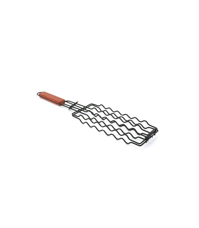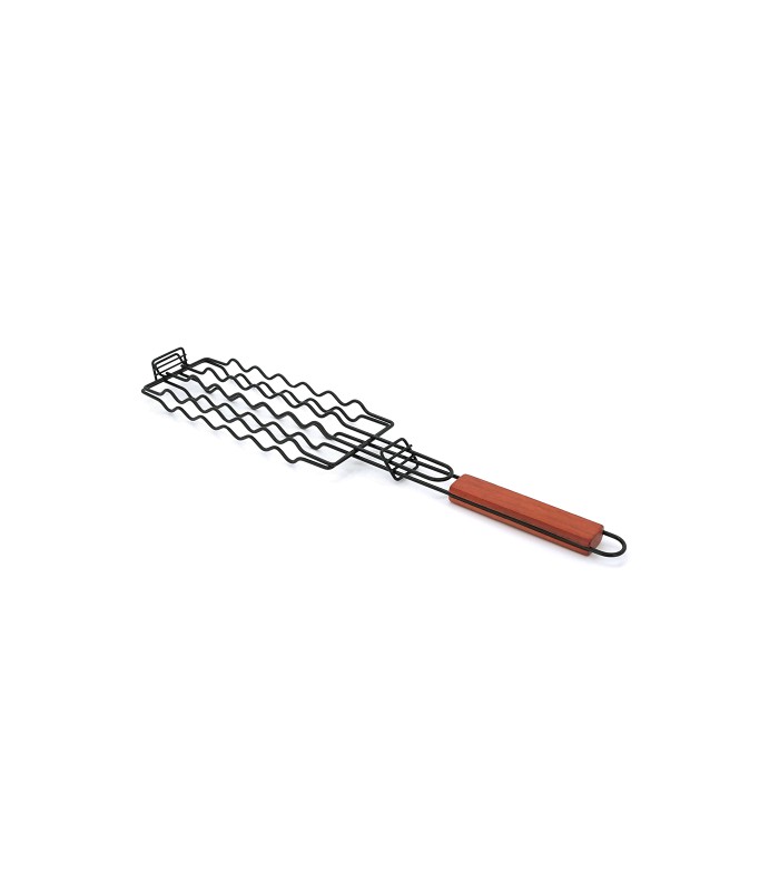 Данная решетка гриль специально разработана для комфортного и равномерного приготовления сосисок. Благодаря своей продуманной конструкции, она надежно удерживает сосиски, предотвращая их падение и обеспечивая равномерное прожаривание со всех сторон. Решетка изготовлена из прочного и жаростойкого материала, что гарантирует ее долговечность и безопасность использования. Удобная ручка позволяет легко переворачивать решетку, не боясь обжечься.