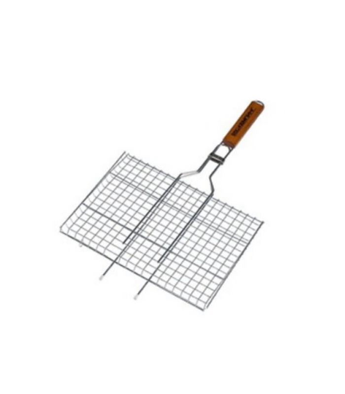 Решетка нержавеющая прямоугольная для гриля - барбекю 460*260 мм - незаменимый товарищ для пикника или домашних посиделок у костра. С помощью решётки можно приготовить различные блюда: стейки, сочные куриные крылышки, грибочки и др. Получается невероятно вкусно! Решётка выполнена из нержавеющей стали с длинной деревянной ручкой, благодаря которой удобно держать и переворачивать без рисков обжечься.
