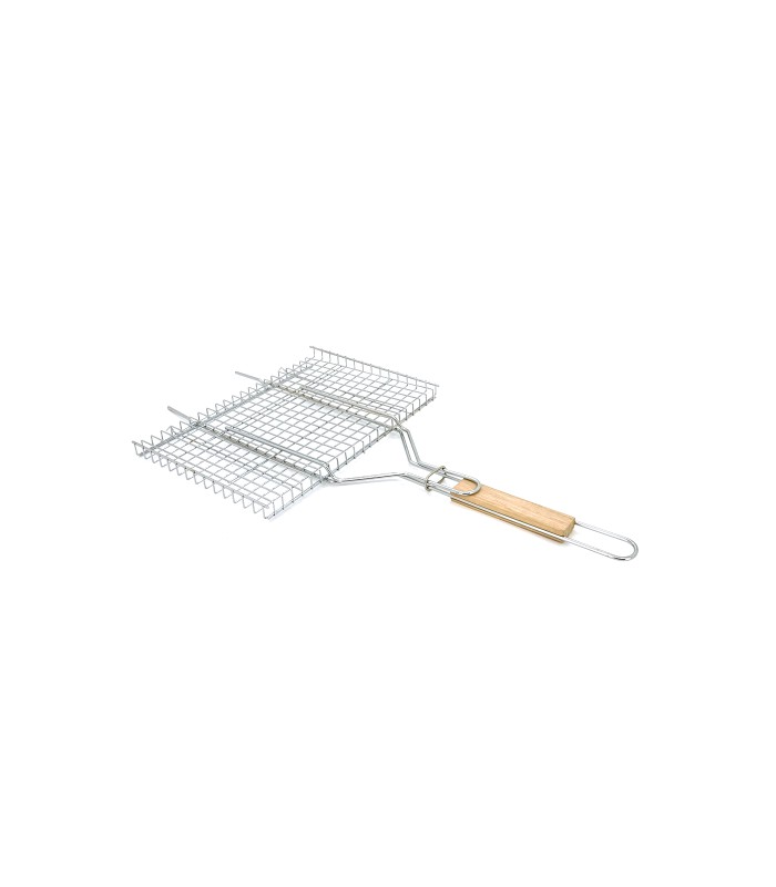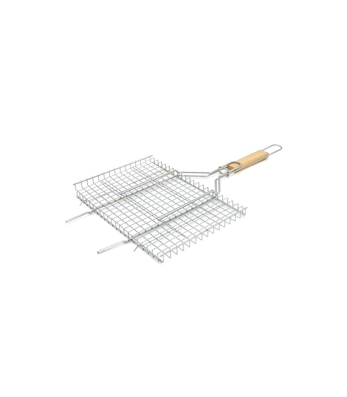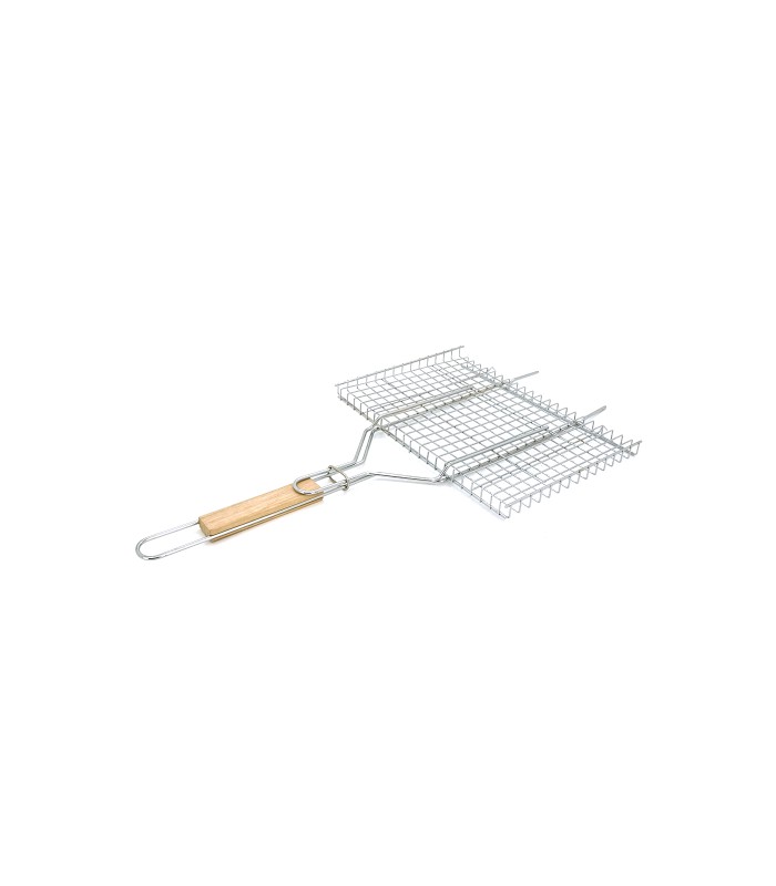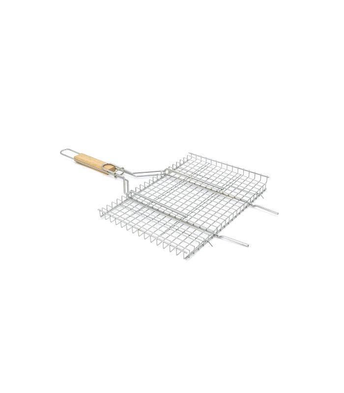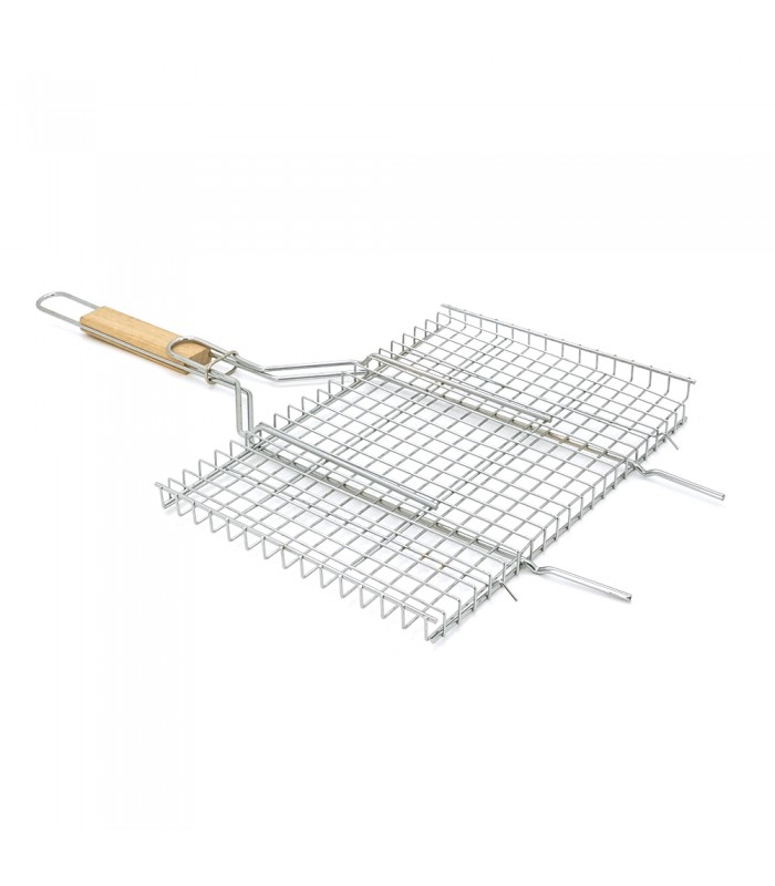 Решетка нержавеющая прямоугольная для гриля - барбекю 360*250 мм - незаменимый товарищ для пикника или домашних посиделок у костра. С помощью решётки можно приготовить различные блюда: стейки, сочные куриные крылышки, грибочки и др. Получается невероятно вкусно! Решётка выполнена из нержавеющей стали с длинной деревянной ручкой, благодаря которой удобно держать и переворачивать без рисков обжечься.
