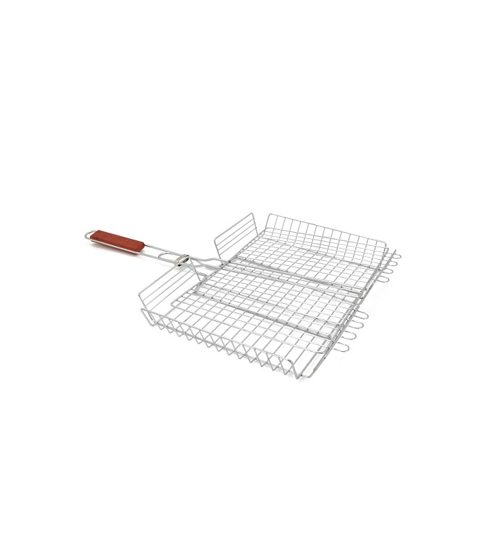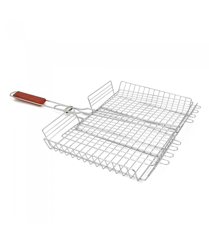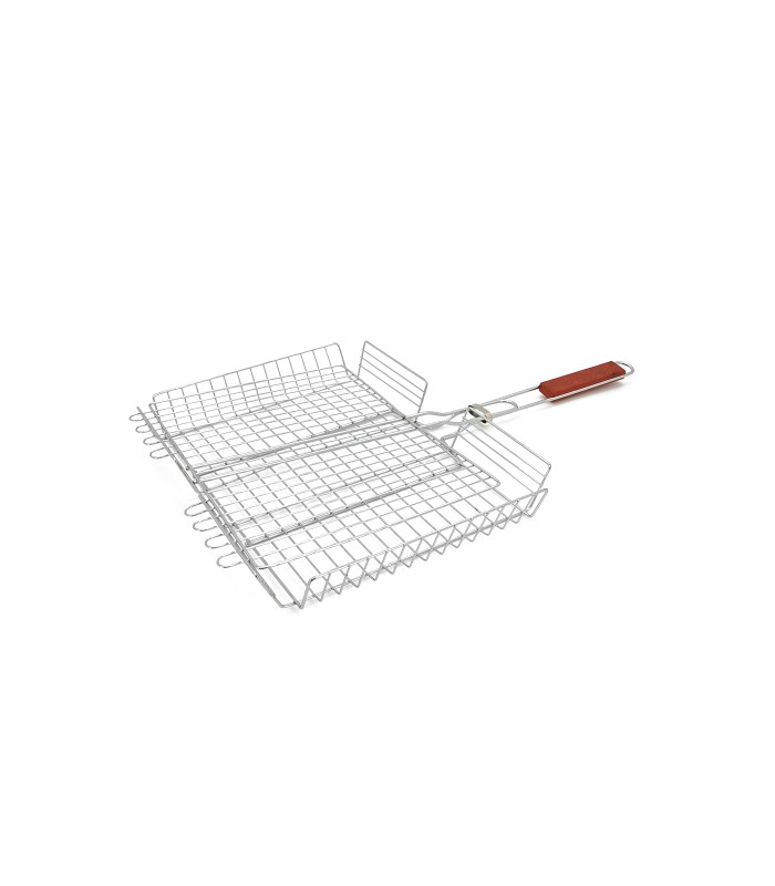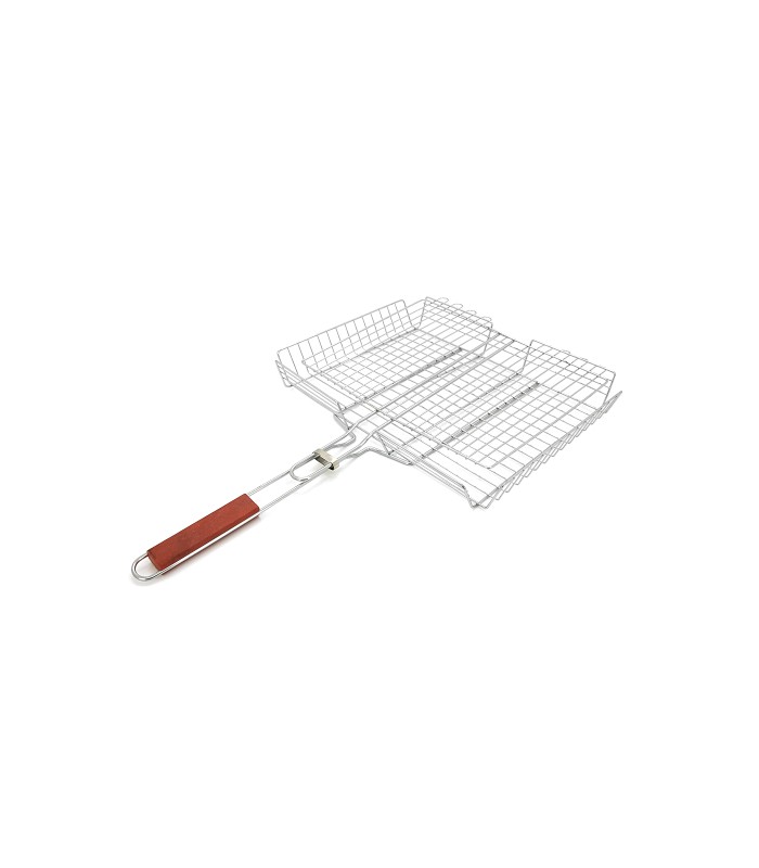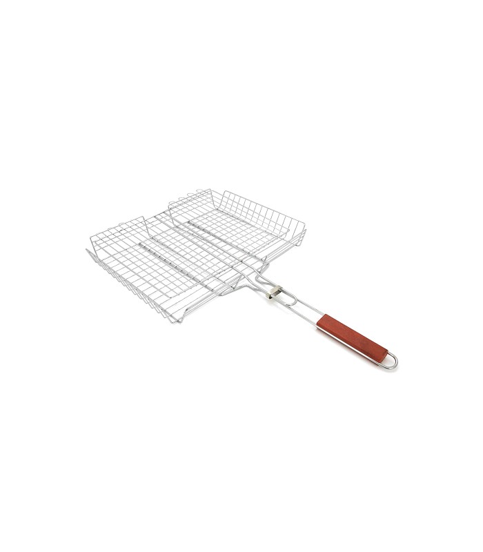 Решетка-гриль выполнена из прочной стали, обеспечивающей равномерное распределение тепла и долговечность изделия. Компактные размеры позволяют брать решетку с собой на природу, а удобная конструкция делает процесс приготовления максимально комфортным.