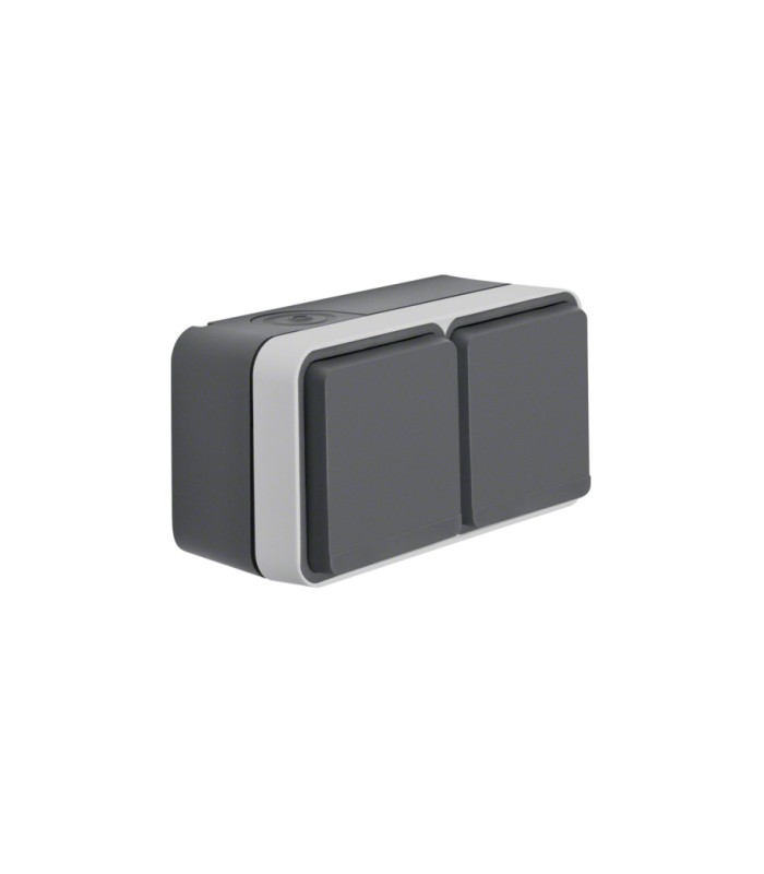 Розетка HAGER з з/к подвійна горизонтальна IP55, сіра, 16А/250В W.1