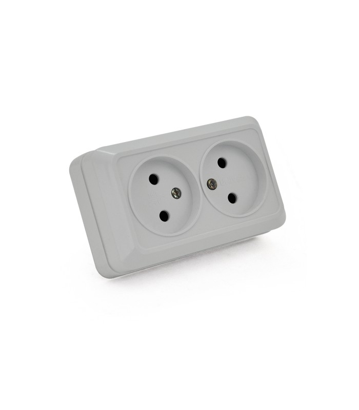 Розетка двойная без заземления наружного монтажа O0102, белая, Q14,