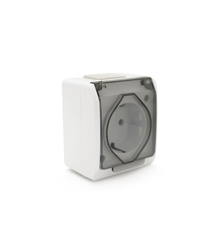 Розетка одинарная без заземления предназначена для наружного монтажа и обеспечивает защиту от пыли и влаги.