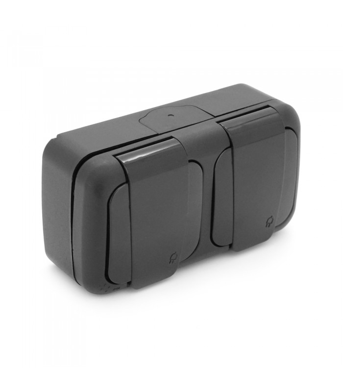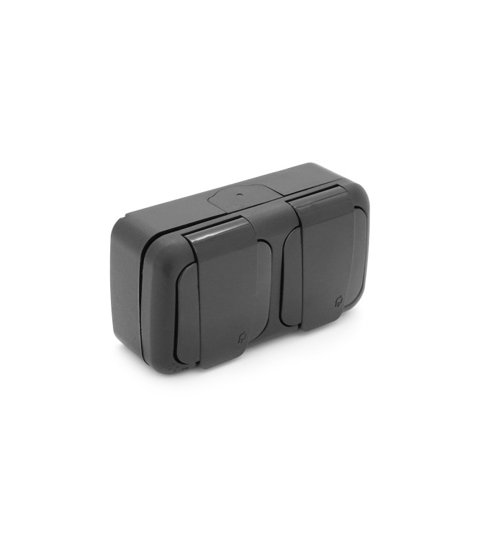 Розетка с заземлением двойная наружная. Имеет пылевлагозащиту IP54. Номинальный ток:16А.