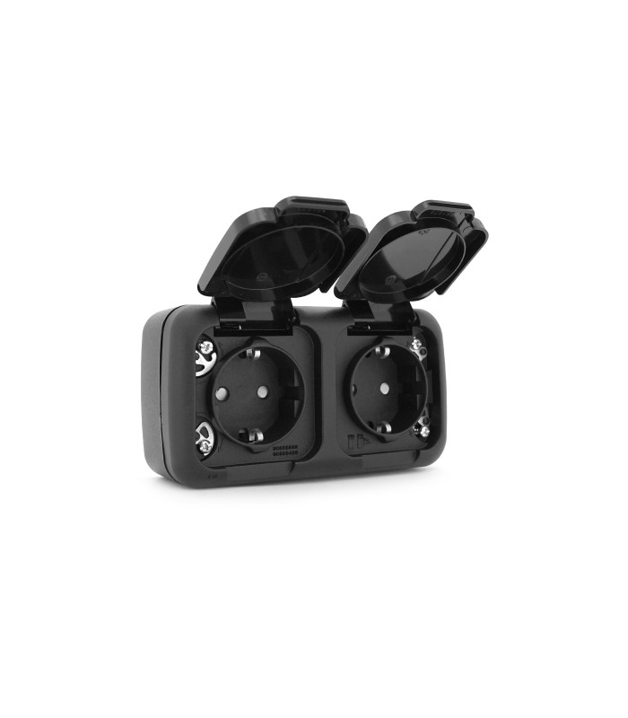 Розетка двойная ViKO Palmiye с заземления, с защитными шторками, наружного монтажа с крышкой, P54, АС: 110-250, 16A Black