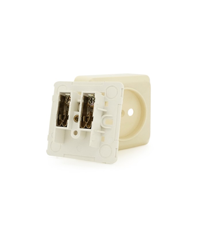 Розетка без заземления - предназначена для накладного (наружного) монтажа. Как правило, розетки без заземления используются в старых зданиях с двухжильной проводной (фаза и ноль). При новом строительстве, а также реконструкции и ремонте, должны использоваться розетки с заземляющим контактом.