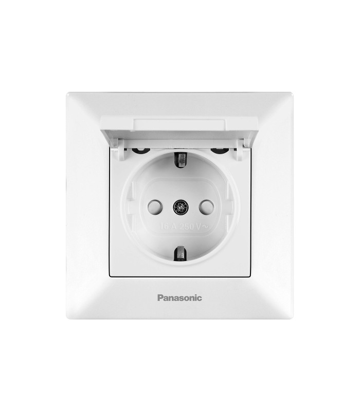 Розетка 'Panasonic Arkedia Slim' с заземлением - выполнена в минималистическом стиле, обладает необходимыми качествами для безопасного монтажа и подключения к сети.