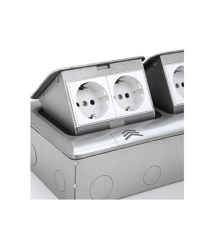 Розетка напольная выдвижная с заземлением J26, четыре розетки - применяется для установки в столах и фальшполах, имеет степень защиты IP40.