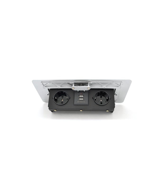 Розетка напольная выдвижная с заземлением J29L, две розетки + 2*USB - применяется для установки в столах и фальшполах, имеет степень защиты IP40.