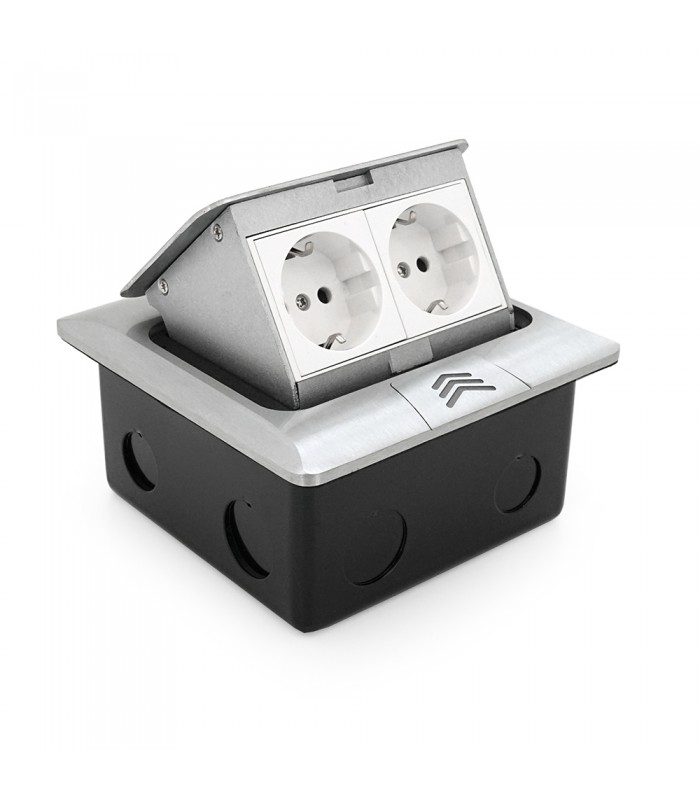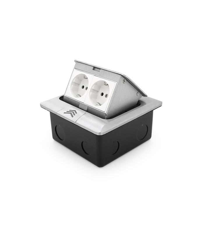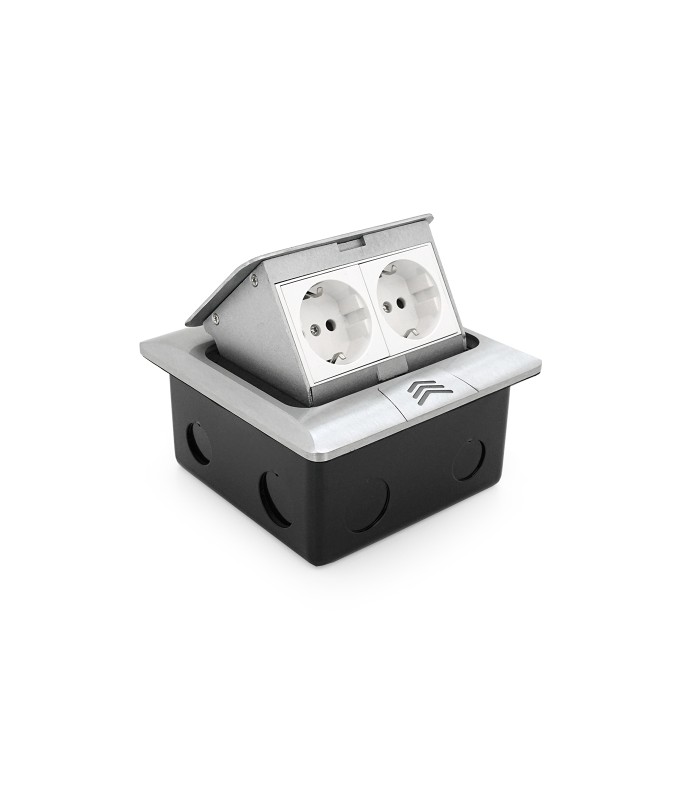 Розетка двойная напольная выдвижная с заземлением J28L - применяется для установки в столах и фальшполах, имеет степень защиты IP40.