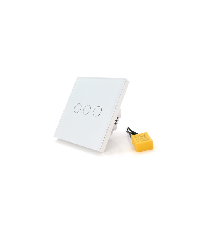 Это 3-канальный настенный выключатель, который позволяет управлять освещением и другими устройствами с помощью интернета и голосовых команд.