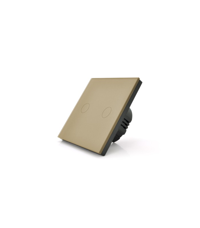 Сенсорный выключатель с заземлением и WiFi управлением, двухканальный, цвета gold, размеры 86х86х35мм.