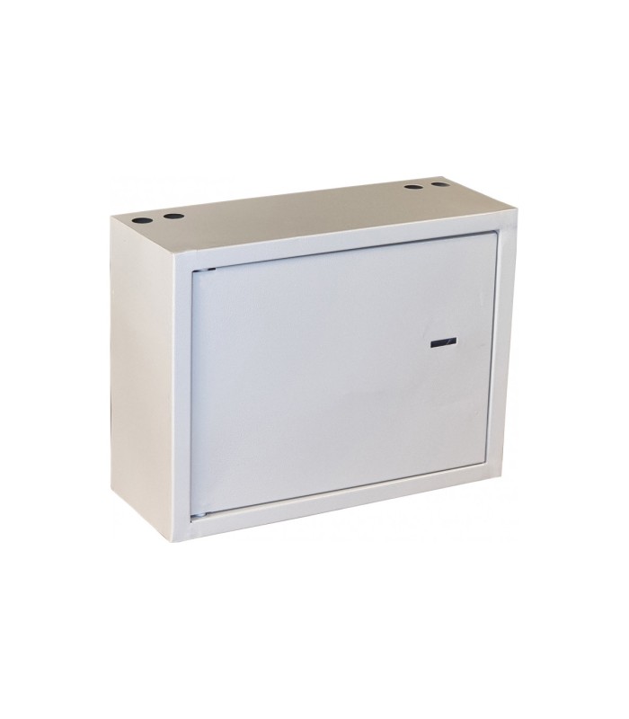 Антивандальный шкаф VAGOS Lite 400х300x150 (0,5мм) с петельной дверью, сувальдным замком и 4 отверстиями диаметром 22мм.