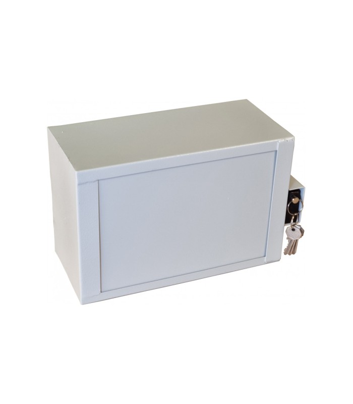 Антивандальный шкаф VAGOS Lite 300х200x140 (0.5мм) с дверцей-пеналом, оснащенный крабовым замком 'Арико' и четырьмя отверстиями диаметром 22мм.