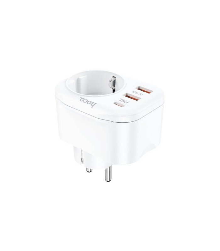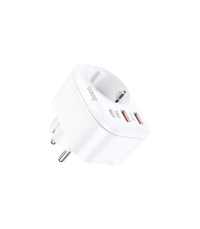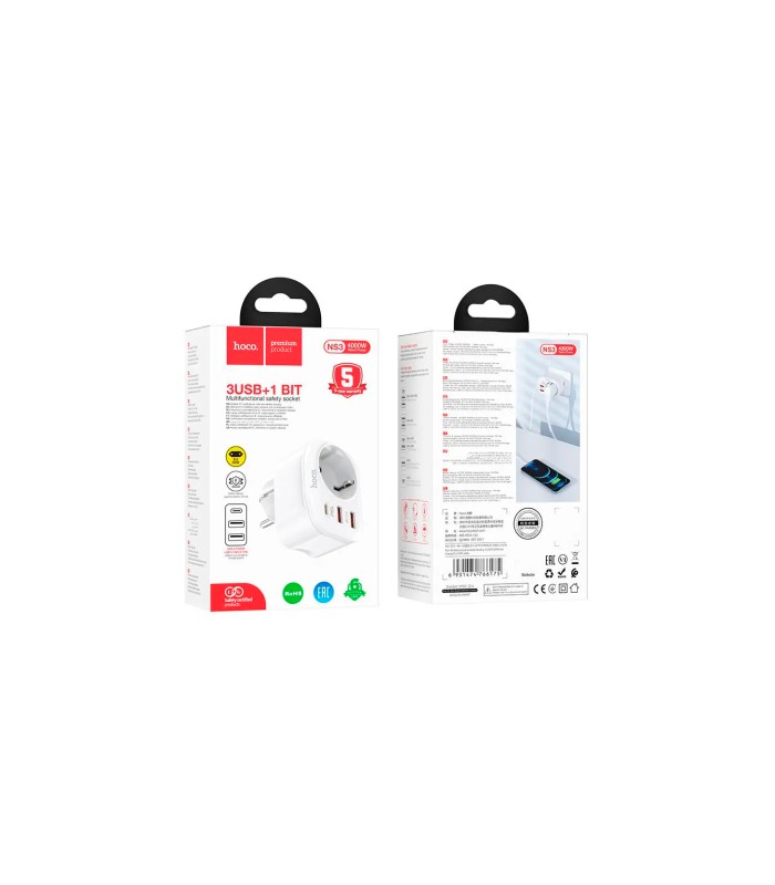 Сетевой фильтр HOCO NS3 на 1 розетка + 2 USB + USB-C, 20W, 220В, White