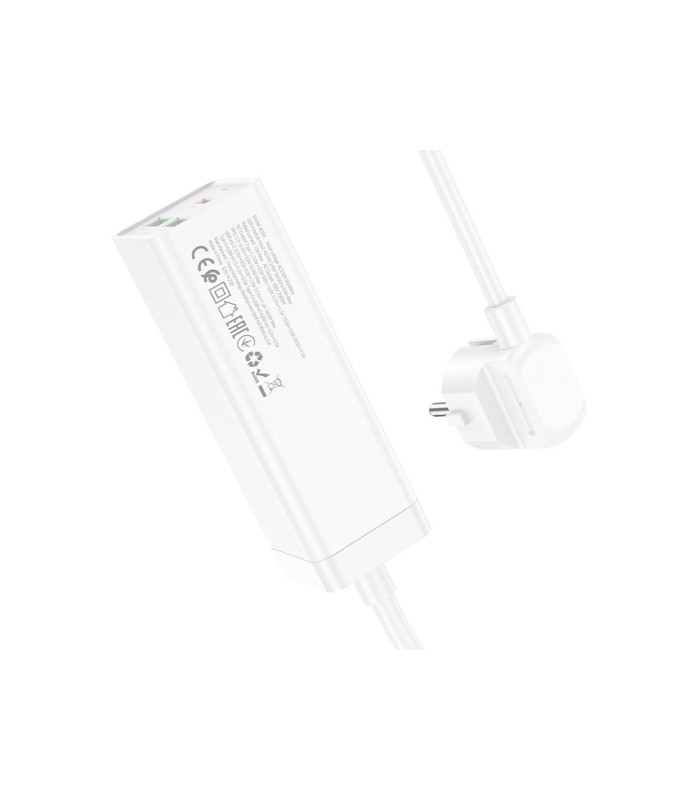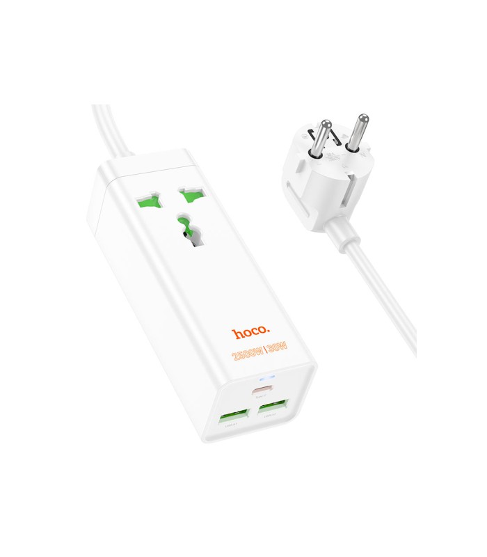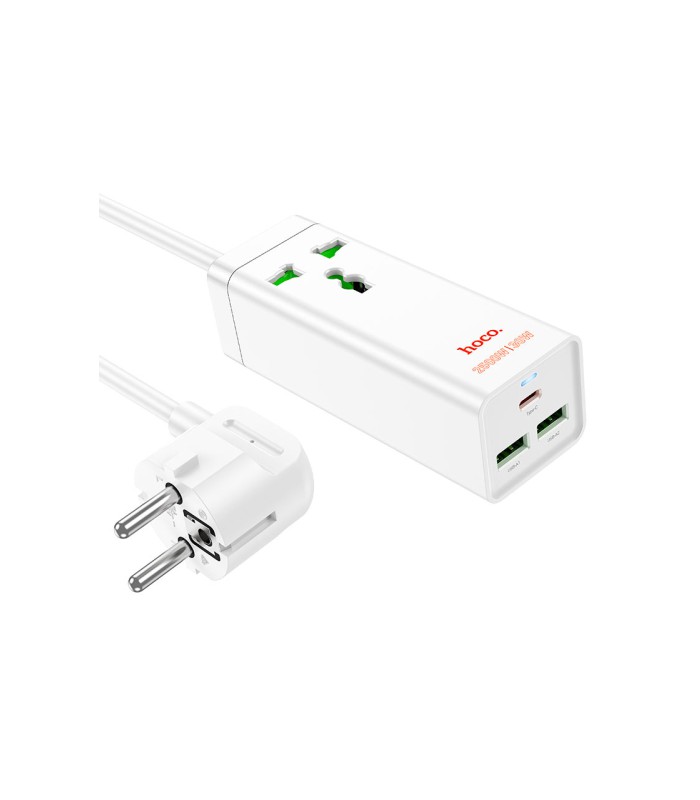 Сетевой фильтр HOCO AC9A на 1 розетку + 2 USB+USB-C, 30W, 220В, кабель 1,5м, White, Box