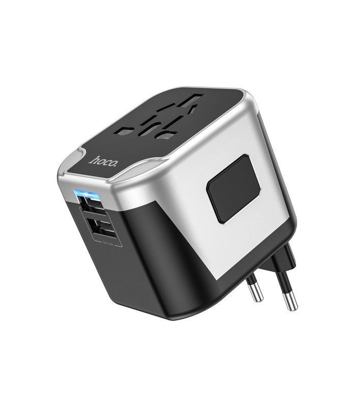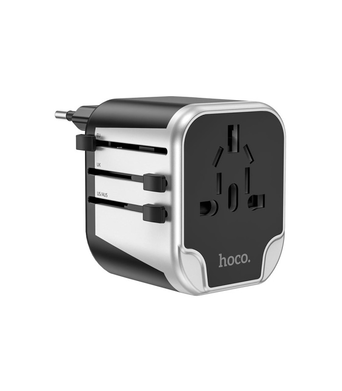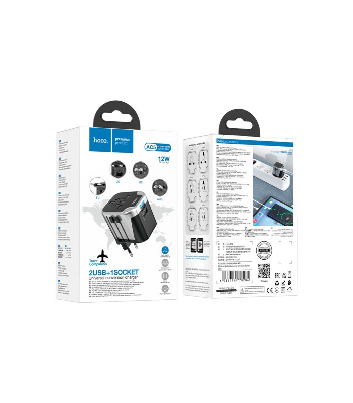 Сетевой фильтр HOCO AC5 на 1 розетку + 2 USB, 220В, кабель 1,5м, Black/Gray, Box