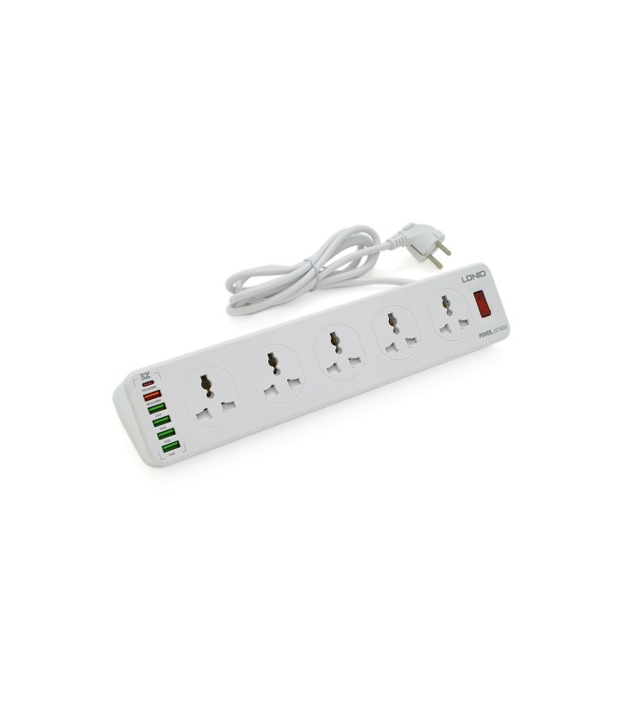 Сетевой фильтр LDNIO SC10610 представляет собой устройство, предназначенное для подключения различных электроприборов и зарядки устройств с помощью USB. Он оснащен 10 розетками и 6 портами USB, имеет длину кабеля 2 метра, и поставляется в белом цвете в упаковке.