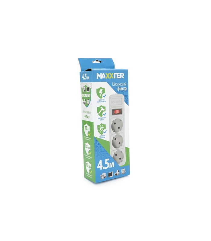 Сетевой удлинитель Maxxter SP5, 220В 10А, 3 розетки, 4.5 м, Gray, Q30