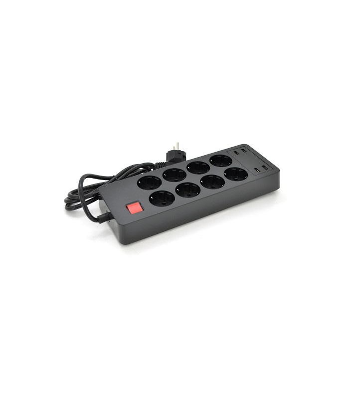 Сетевой фильтр - стильное многофункциональное устройство, которое прекрасно впишется в твой интерьер. Удлинитель изготовлен из прочного огнестойкого пластика, на котором расположены 8 розеток и 4 usb-порта. С защитой от перегрузок, скачков напряжения и коротких замыканий, твои устройства будут в полном порядке.