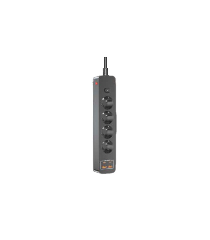 Сетевой фильтр на 4 розетки + 2 USB выхода 5V-2.4A + 2PD, кнопка включения с индикатором, 10A, 240V/2500W, Black