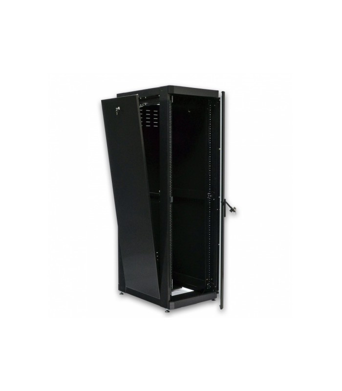 Это стойка для серверов с размерами 19' и высотой 42U, изготовленная из усиленного материала и окрашенная в черный цвет. Ее размеры составляют 800х1055 мм (ширина и глубина соответственно).