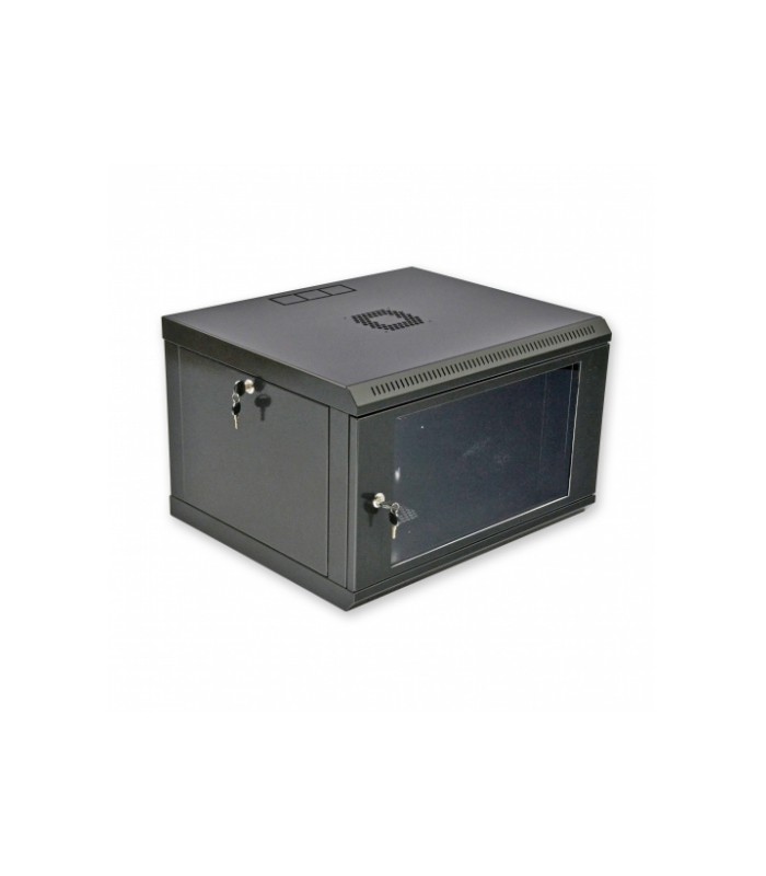 Шафа 6U с размерами 600x500x373мм (Ш*Г*В), выполнена в экономичном стиле с использованием акрилового стекла и окрашена в черный цвет.