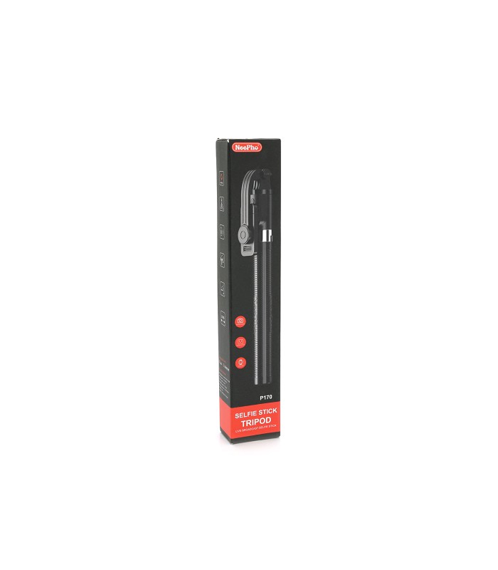 Этот штатив Nee Pho P-170 предназначен для телефонов и камер. Он имеет высоту от 31 до 170 сантиметров и оснащен Bluetooth пультом для удобного управления устройством. В комплекте поставляется коробка для удобного хранения и переноски.