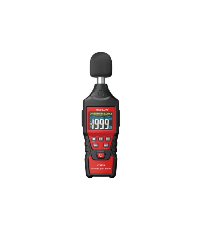 Цифровой шумомер Mayilon HT-622B представляет собой компактное и удобное устройство для измерения уровня шума. Он обладает высокой точностью измерений и прост в использовании благодаря своему удобному дисплею и функциональным кнопкам. Шумомер Mayilon HT-622B идеально подходит для использования как в домашних условиях, так и на производстве.