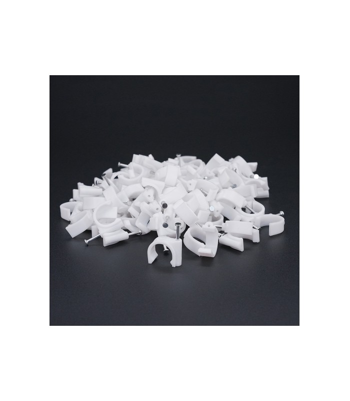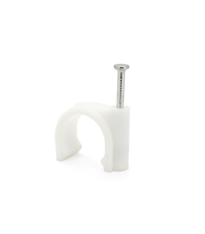 Конструкция скоб для кабеля позволяет быстро и надежно фиксировать круглый кабель на таких рабочих поверхностях как дерево и гипсокартон, а гвоздь из каленой стали позволяет производить надежную фиксацию кабеля без применения дополнительных фиксирующих элементов.