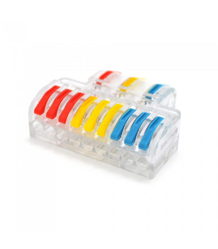 Клеммная колодка с нажимными зажимами 3х9-провода LT-933 - предназначена для выполнения быстрых электромонтажных работ, подключения электрооборудования. Для того что бы работать с данной колодкой нет необходимости обладать сверх знаниями и профессиональным инструментом, колодка универсальна и быстро соединит электропровода, а также обладает способностью быстро размыкать контакт.