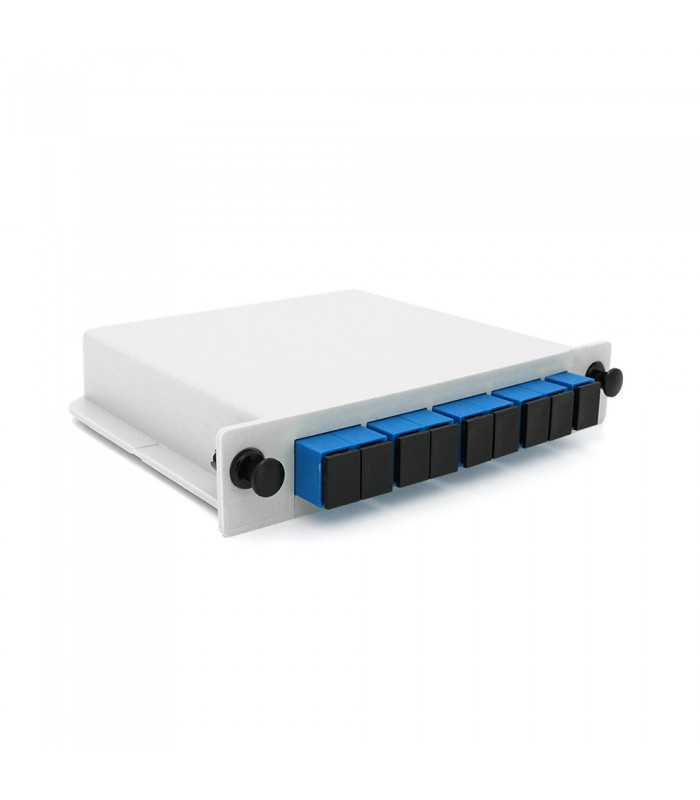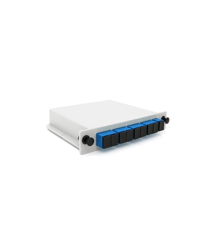 8-портовый оптический сплиттер SC/UPC предназначен для разделения оптического сигнала на восемь равных частей. Он используется в оптических сетях для подключения нескольких абонентских устройств к одному источнику сигнала.