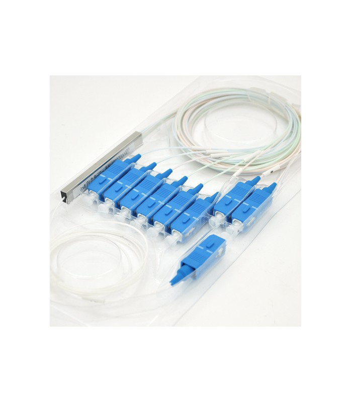 Делитель оптический Coupler PLC-1x8-split-0-SC / UPC mini 0.9mm - это миниатюрный оптический сплиттер, который разделяет один оптический сигнал на восемь одинаковых сигнала. Он имеет коэффициент разделения 1:8 и работает в диапазоне длин волн от 1310 до 1625 нм. Делитель изготовлен из высококачественного оптического волокна и имеет низкие вносимые потери и PDL. Он подходит для использования в различных оптических приложениях, включая телекоммуникации, телерадиовещание и измерительную технику.