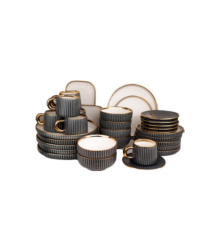 Чайный сервиз на 6 персон, прямоуголный разнос х 2шт., чашка с блюдцем х 6шт., пиала х 6 шт., десертная тарелка х 6 шт.
