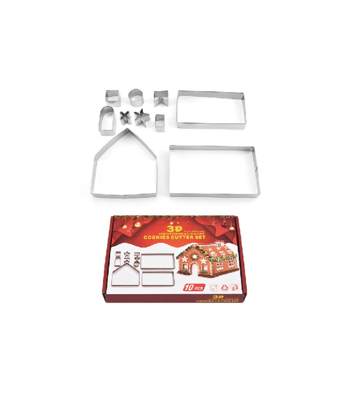 Формы для печенья YR1806-28 из нержавеющей стали (рождественский домик) 10 предмета/фигурки, Box