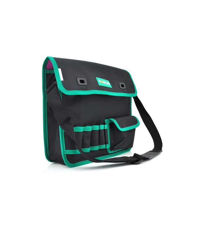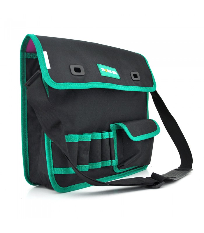Сумка для монтажных инструментов TUOSEN предназначена для удобного и безопасного хранения и переноски монтажных инструментов. Она имеет 8 кармашков различного размера для удобного размещения всех необходимых инструментов. Сумка выполнена в черно-зеленом цвете, что делает ее стильной и привлекательной.