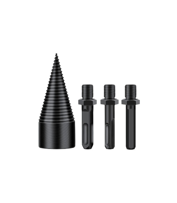 Сверло идеально подходит для плотницких работ, таких как раскалывание бревен, создание пазов или подготовка дерева для дальнейшей обработки. Благодаря конической форме оно легко входит в материал, минимизируя усилия при работе. Насадки в комплекте позволяют быстро адаптировать инструмент под разный инструмент без необходимости дополнительных покупок.