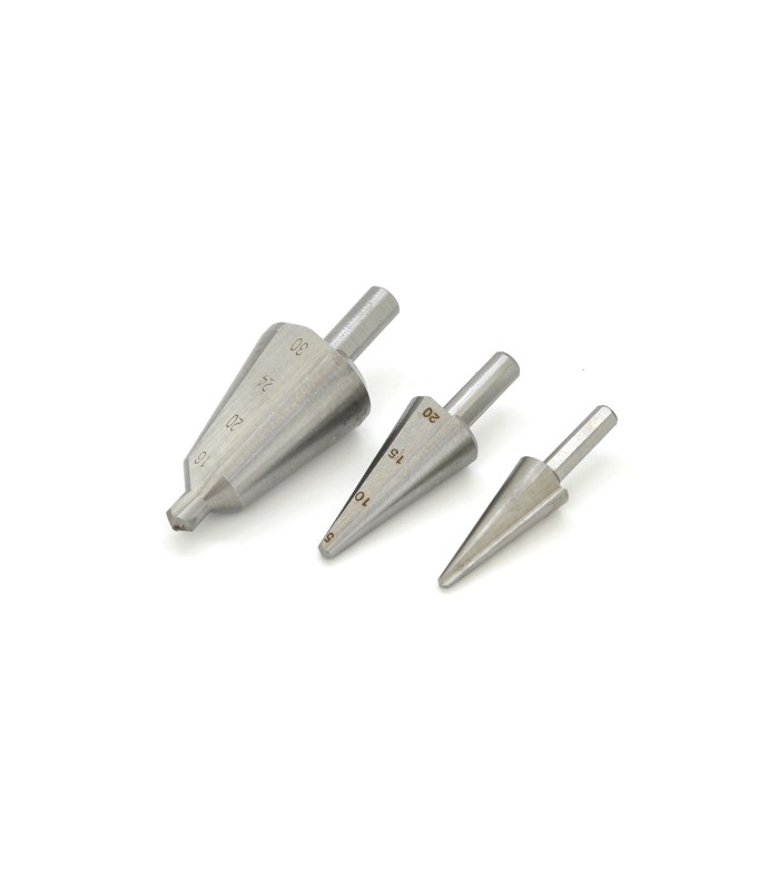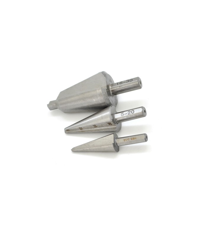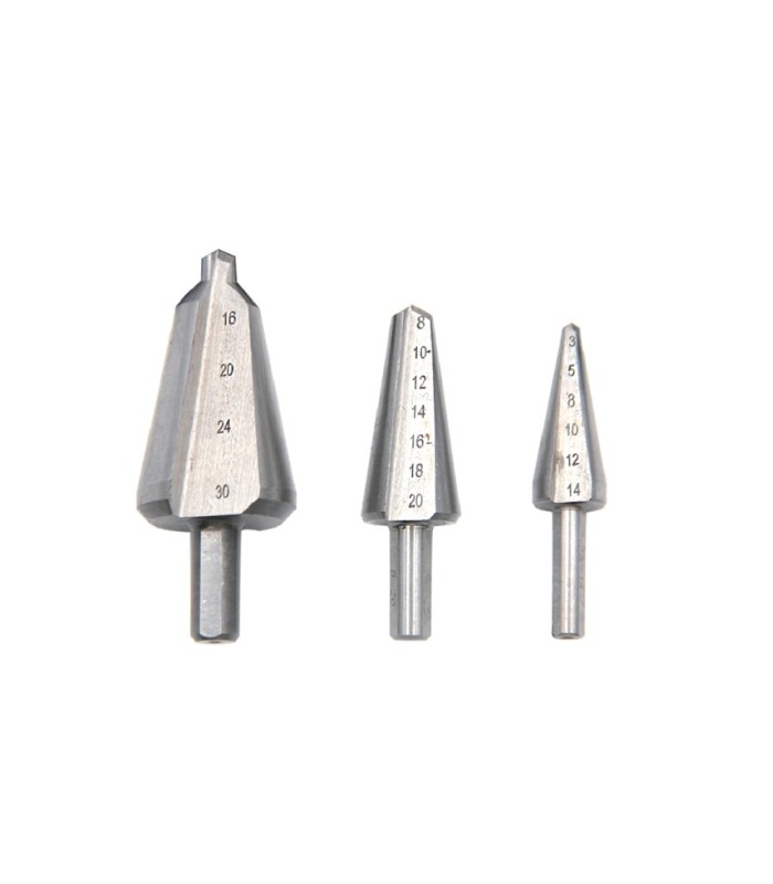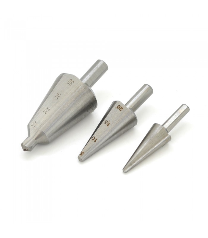 Ступенчатая структура позволяет сверлить отверстия разного диаметра (3-30 мм), без замены режущего инструмента.