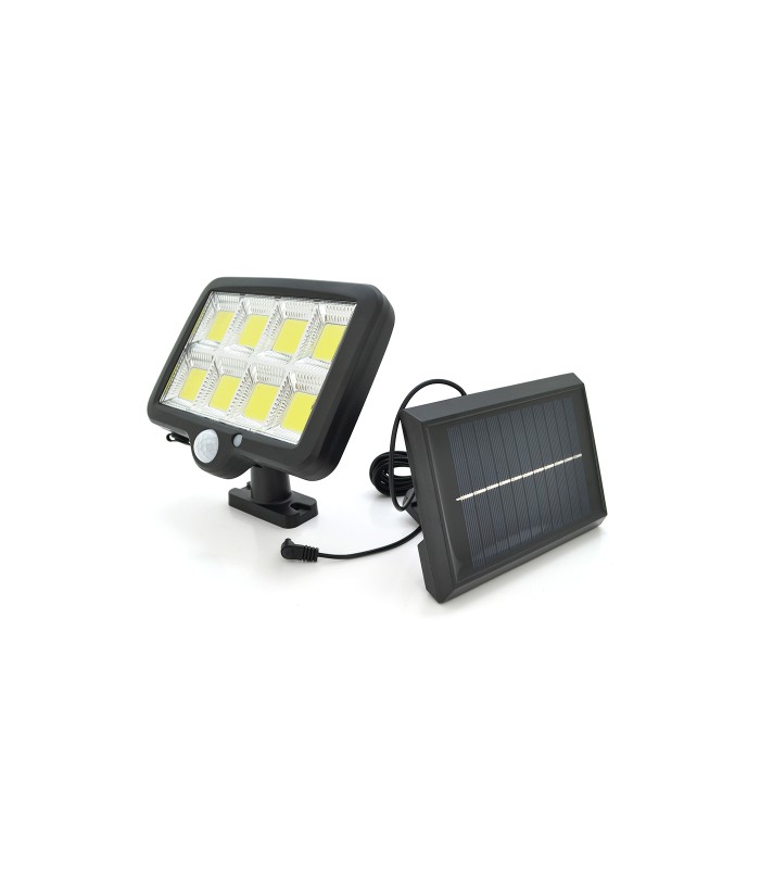 Уличный фонарь BK-128-2 с солнечной панелью и пультом, встроенным аккумулятором, креплением на стену, 2COB, черного цвета.