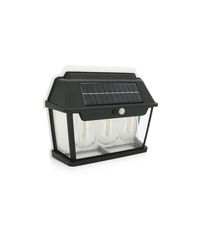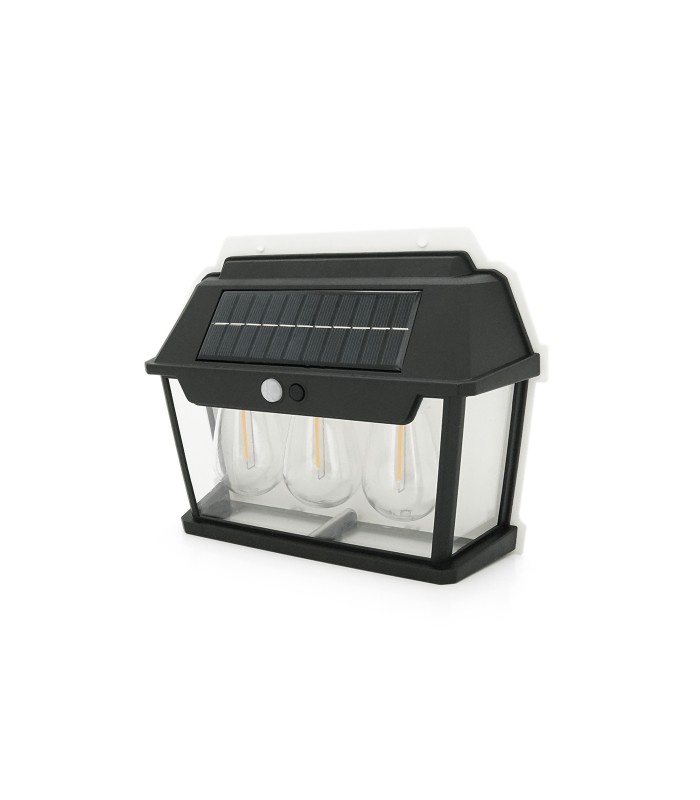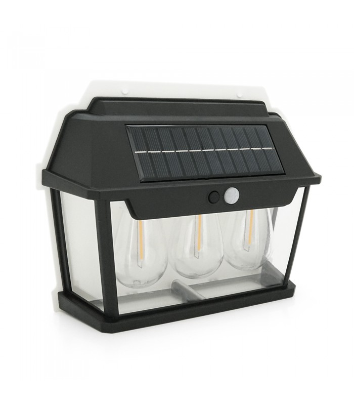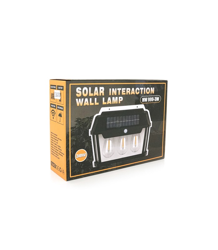 Уличный фонарь YT9993 с солнечной панелью и датчиком движения. Имеет 3 лампы, встроенный аккумулятор и крепление на стену. Цвет: черный. Упаковка: коробка.