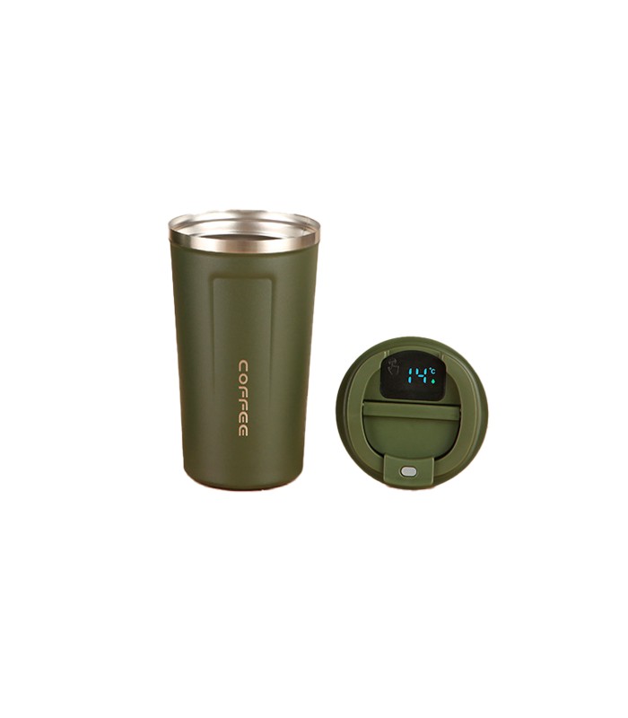Термокружка Merlion из нержавеющей стали, c LED дисплеем, объем 510 мл., зеленая
