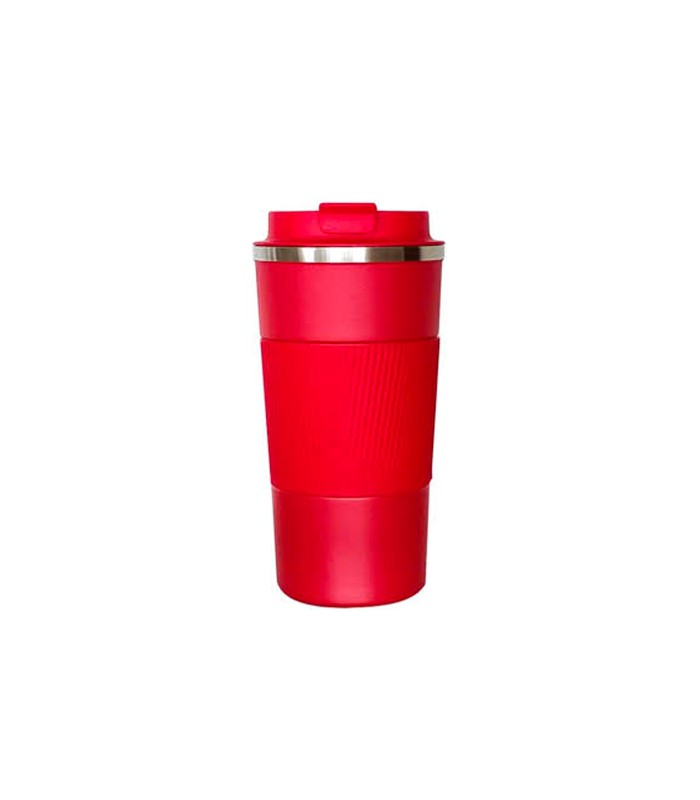 Термокружка Merlion из нержавеющей стали, объем 510 мл., красный, с силиконовым чехлом и откидной крышкой