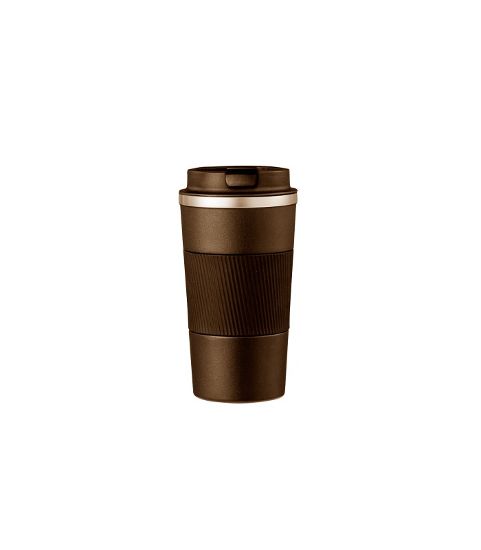 Термокружка Merlion из нержавеющей стали, объем 510 мл., коричневый, с силиконовым чехлом и откидной крышкой