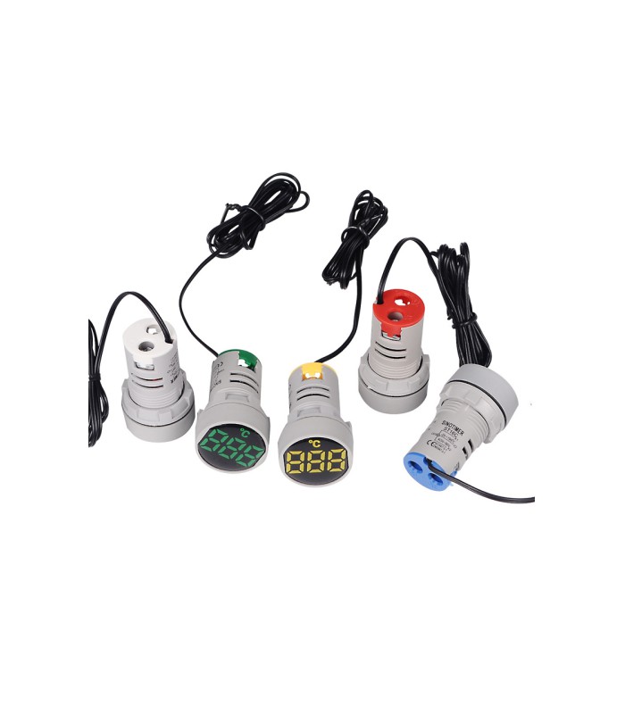 Измеритель температуры ST16C предназначен для измерения температуры в диапазоне от -25 до +199°C. Он оснащен LED индикацией зеленого цвета и имеет круглую форму диаметром 22мм. Для подключения к сети используется переменное напряжение от 50 до 380V. Габариты измерителя составляют 28х51х20мм.