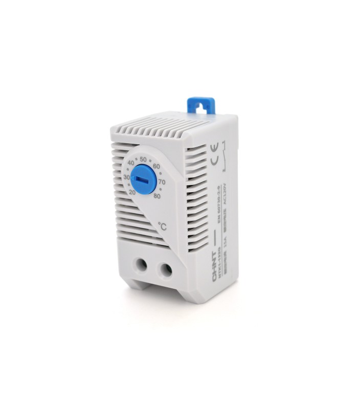 Управление прибором интуитивно понятно: с помощью поворотной ручки устанавливается необходимый температурный порог в диапазоне от 20°C до 80°C. Встроенный биметаллический датчик обеспечивает точное срабатывание и длительный срок службы без необходимости обслуживания. Модель с нормально разомкнутым контактом (NO) предназначена для коммутации нагрузок в системах климат-контроля.