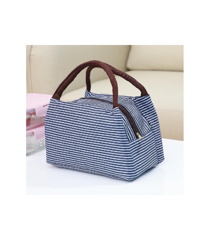 Сумка для ланч-бокса Panda, алюминевая термоизоляция, ткань, 230*130*190мм, бело/синяя полоска Новинка