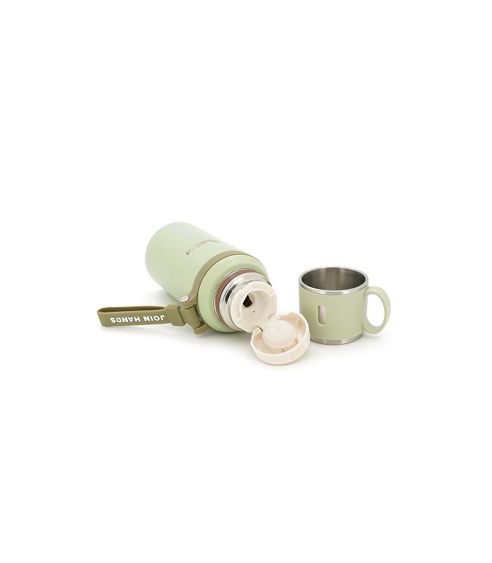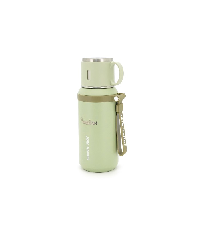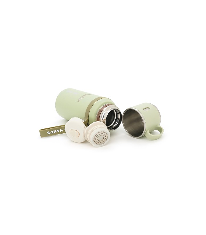 Термос для чая Merlion из нержавеющей стали, с ситечком, чашкой и ручкой для переноски, объем 600 мл., зеленый