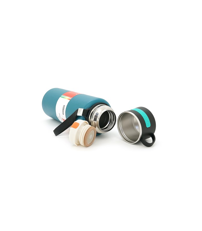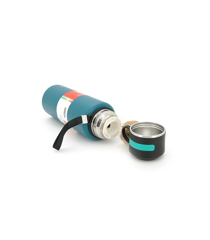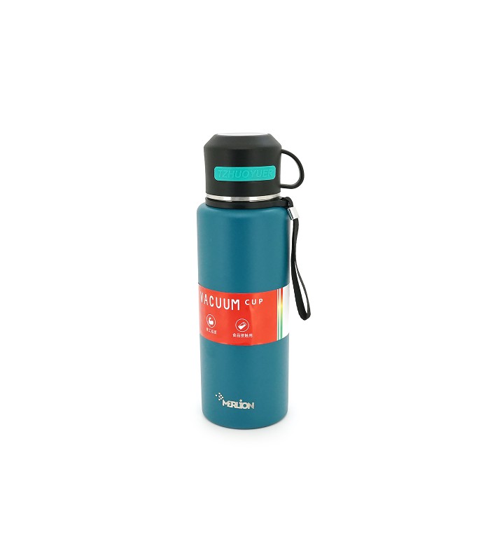 Термос Merlion из нержавеющей стали, с чашкой в чехле и ручкой для переноски, объем 1000 мл., синий